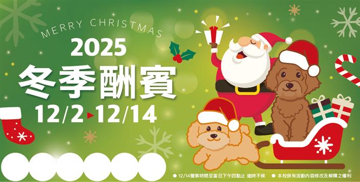 育新人本冬季酬賓活動從12/4開始,12/14下午4點結束,逾時不候,謝謝!